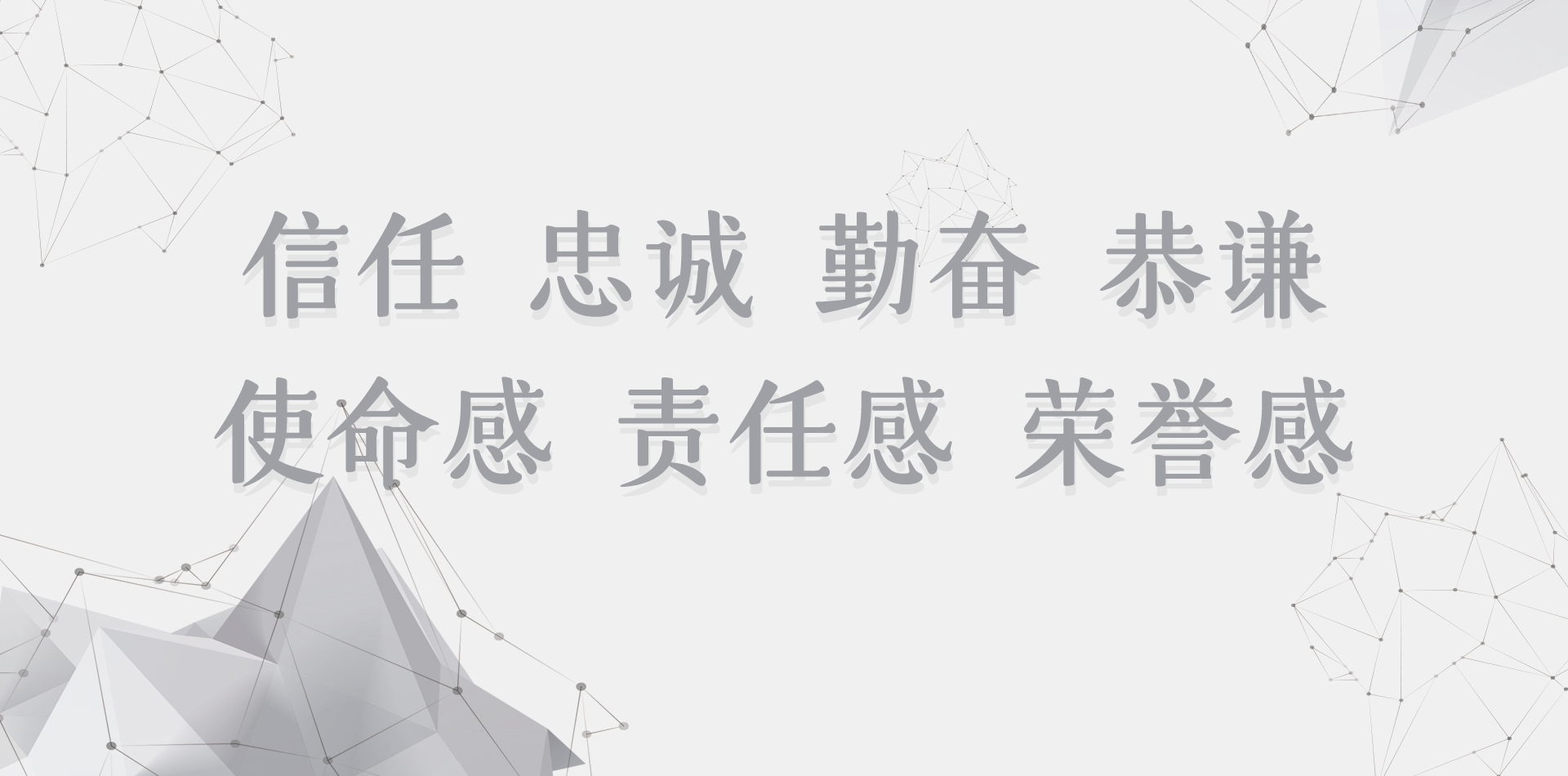 價值觀篤定“信任 忠誠 勤奮 恭謙 使命感 責(zé)任感 榮譽感”;踐行以“客戶利益為中心的核心價值觀”。